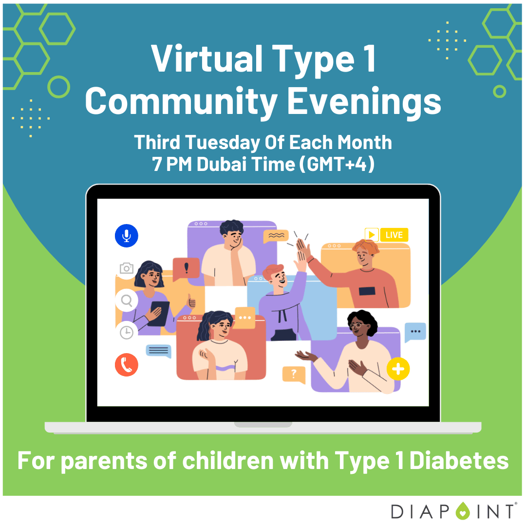 On the third Tuesday of every month, parents of a child with Type 1 Diabetes are invited to join Pamela Durant, Founder of Diapoint and mother of a child with Type 1 Diabetes, together with the Diapoint Community for a virtual chat about being a parent of a child living with Type 1 Diabetes.
